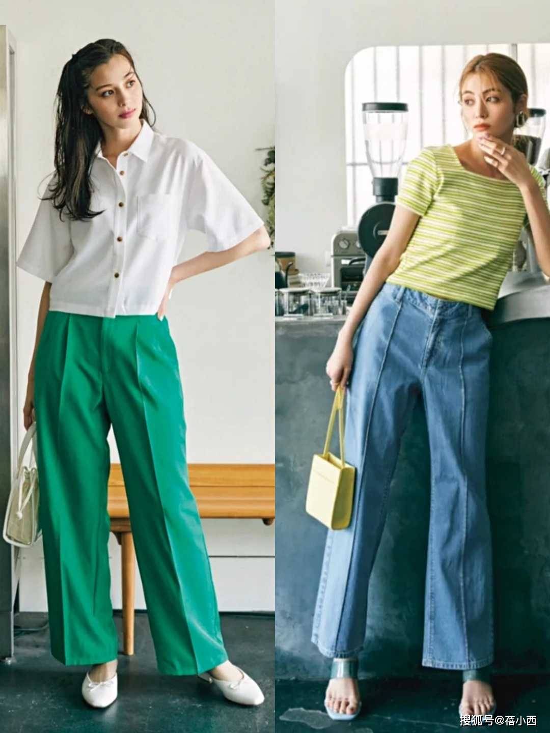 首先要介绍的单品就是阔腿裤。阔腿裤一直以来都是基础款中最受欢迎的单品之一,尤其在气温升高的季节,想要穿长裤却又不想感到束缚时,它就是最佳选择。相比紧身裤,阔腿裤更显休闲、舒适,并且能够打造一种轻盈、自在的氛围。日系博主们通常会选择不同颜色的阔腿裤来搭配,比如经典的黑色和白色以外,也有一些更富有趣味的蓝色或绿色,它们让整体造型更加时尚,并且在人群中更容易脱颖而出。